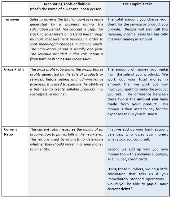 We have a few thangs we like to work with our clients on at Empire Accountants; one of the most important is looking at their numbers together and ensuring those peeps in your business that need to understand the numbers, actually do…!